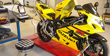 Käytössämme on diagnostiikkatyökalu, jolla onnistuu diagnostiikan luku, moottoriohjauksen säätötyö, huoltovalojen nollaus. Laite on yhteensopiva 50 eri pyörämerkin kanssa ja soveltuu lisäksi mönkijöille ja moottorikelkoille.